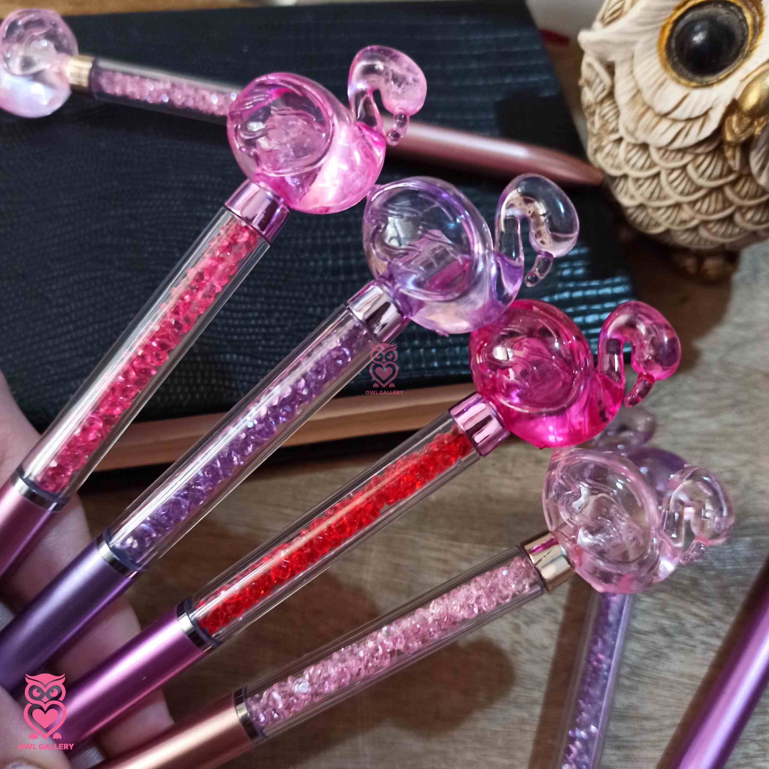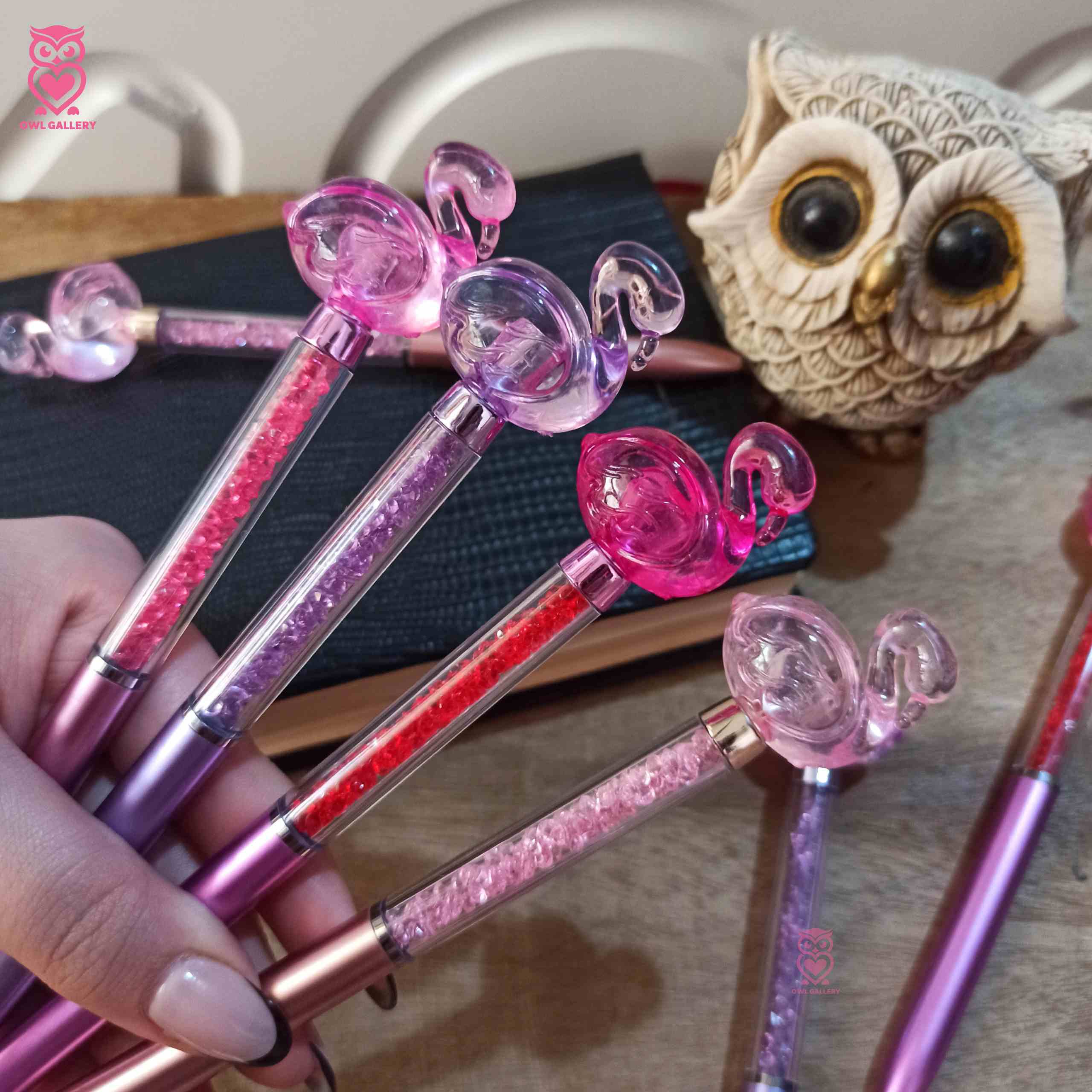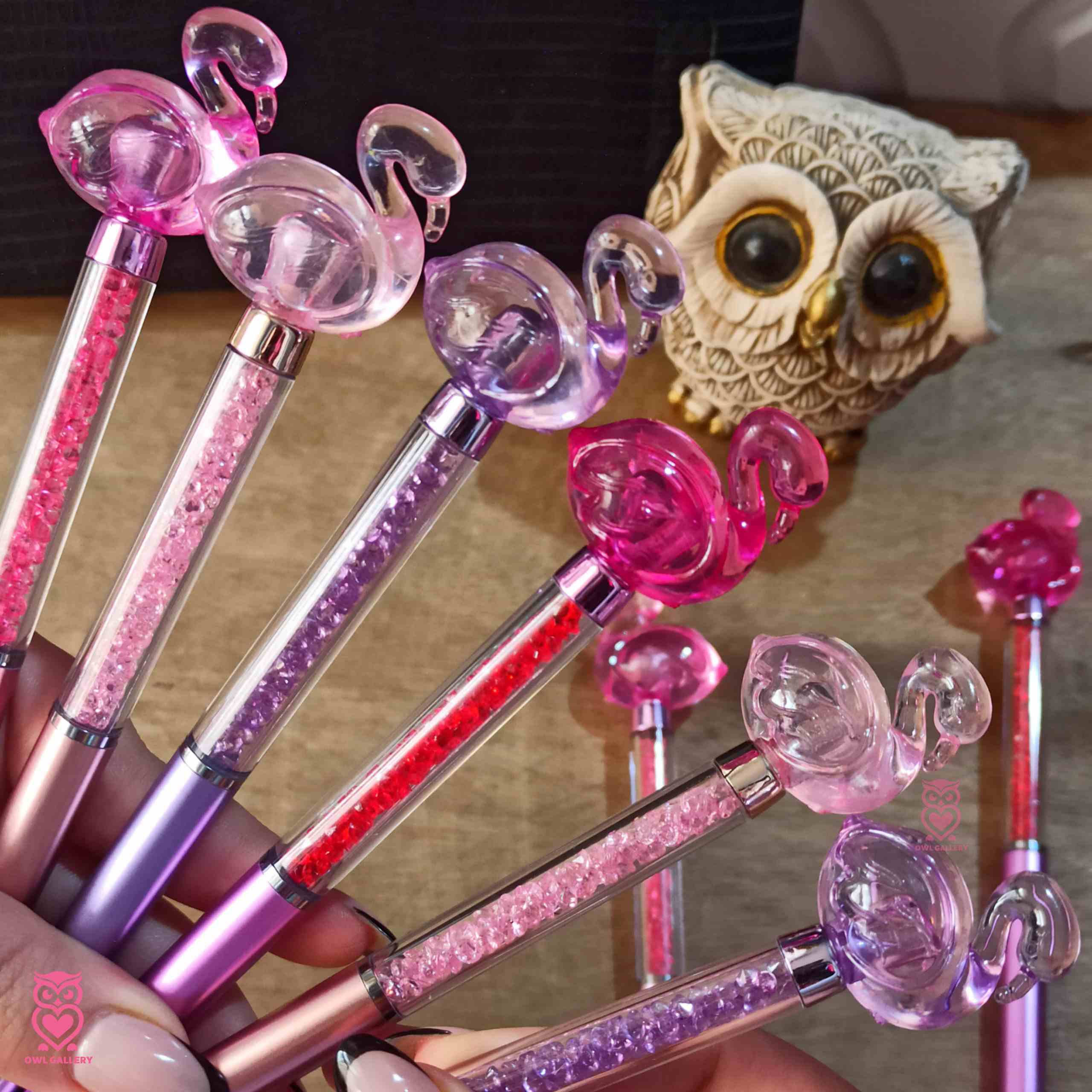 خودکار آبی کریستالی پیچی طرح فلامینگو