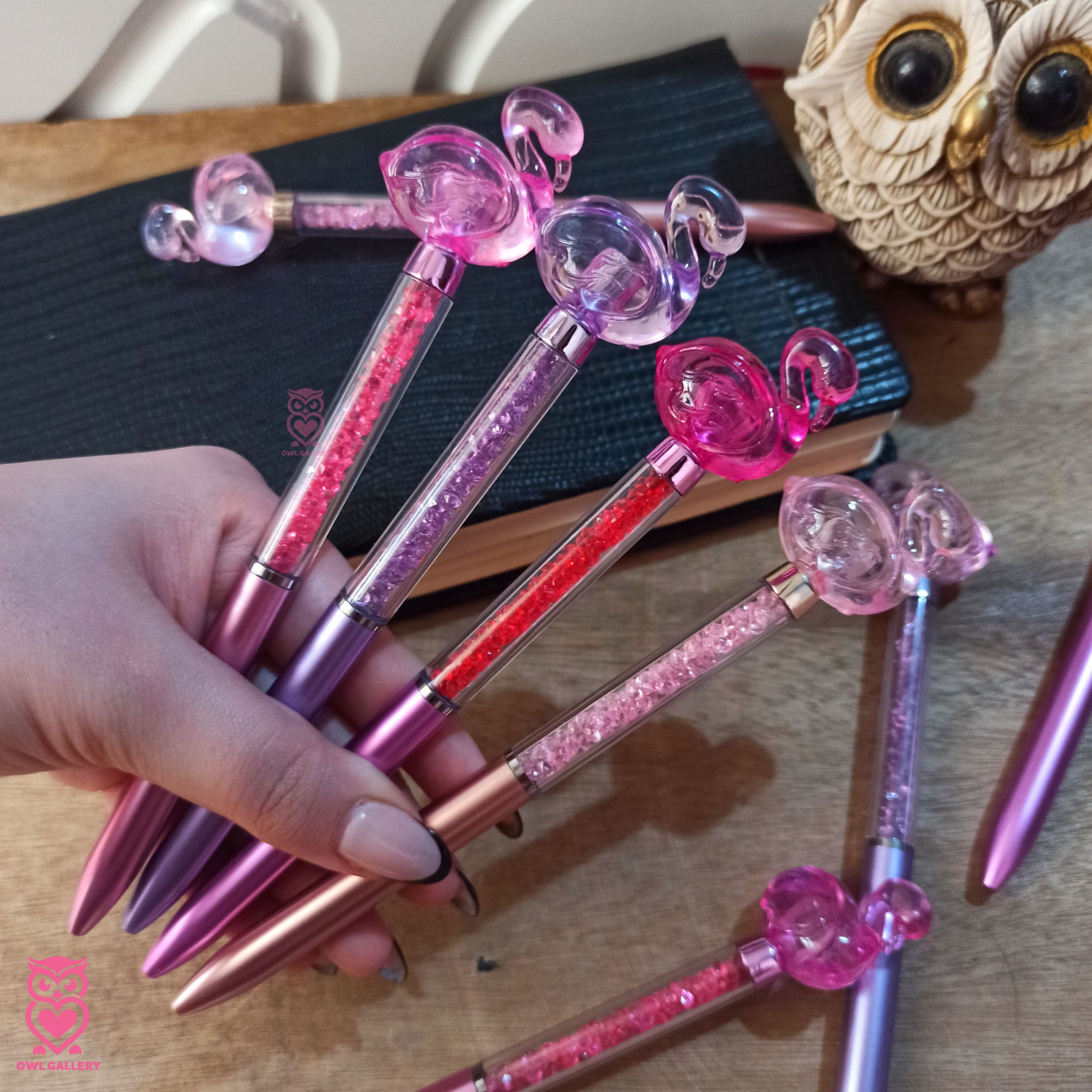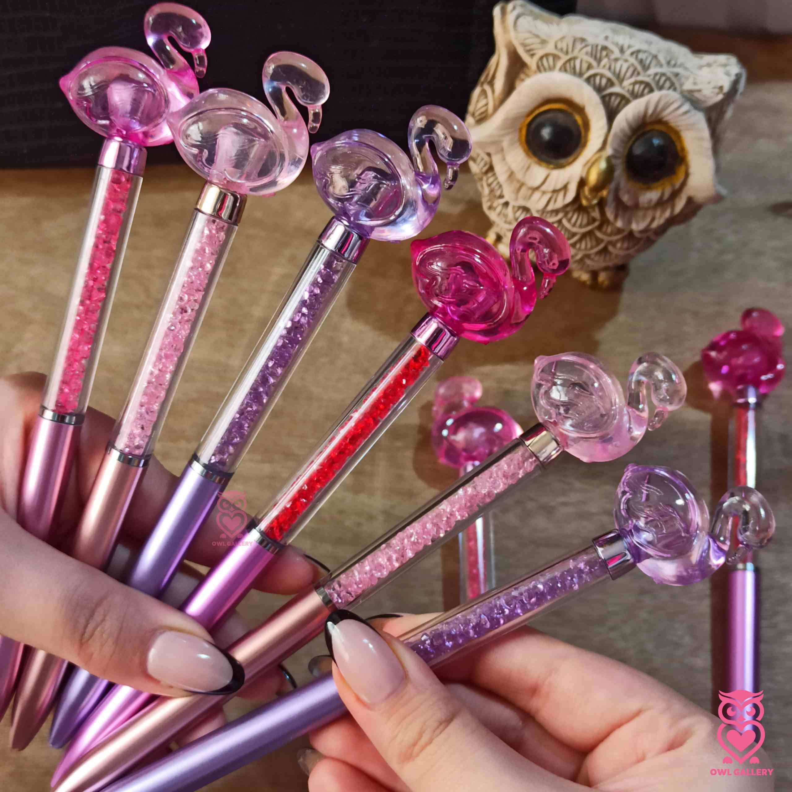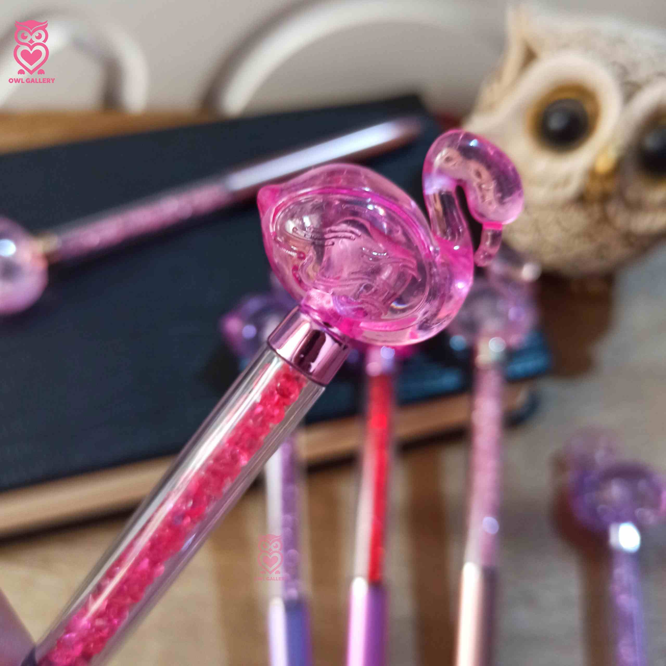 خودکار آبی کریستالی پیچی طرح فلامینگو