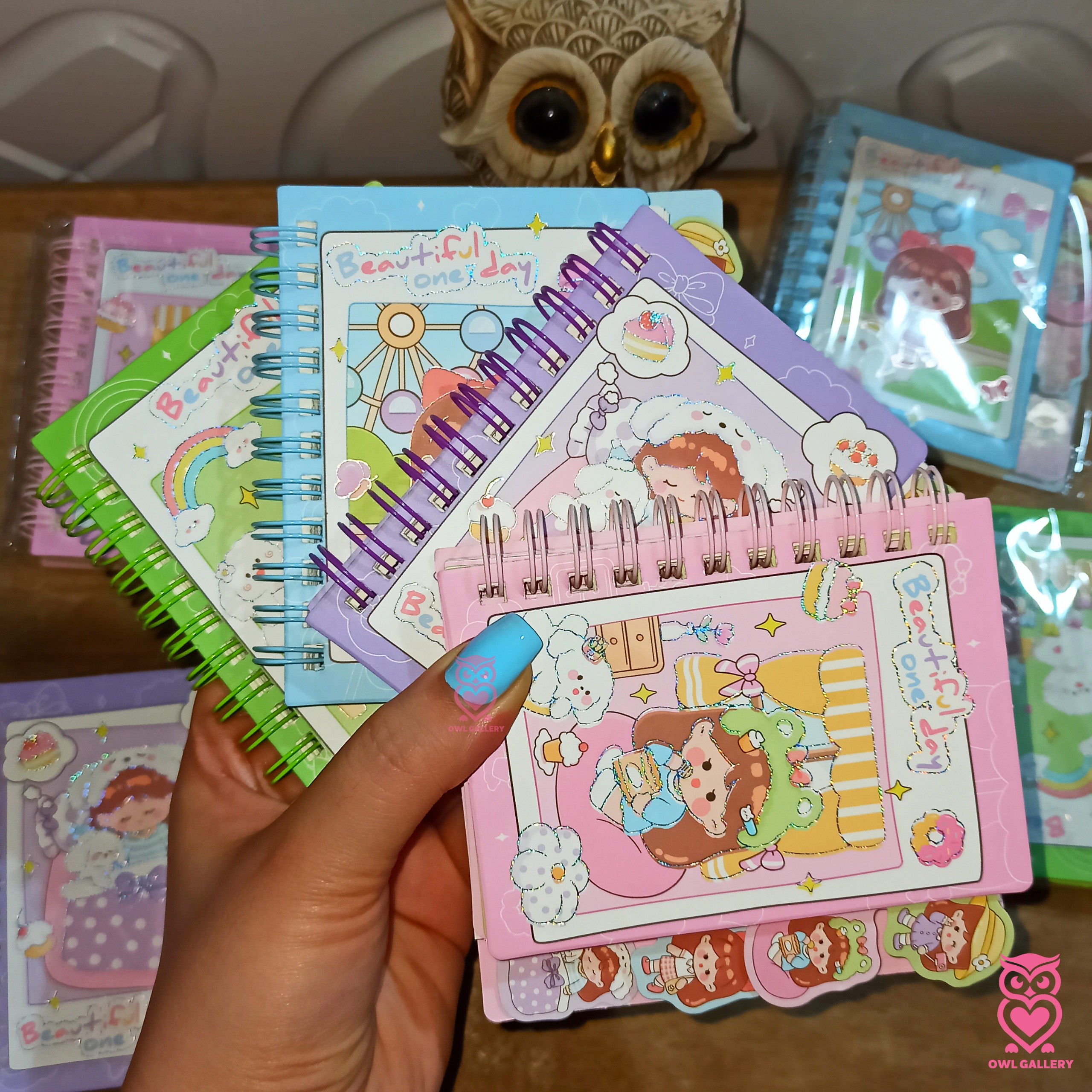 چهار رنگ خوشگل آبی، صورتی، بنفش و سبز دارد.