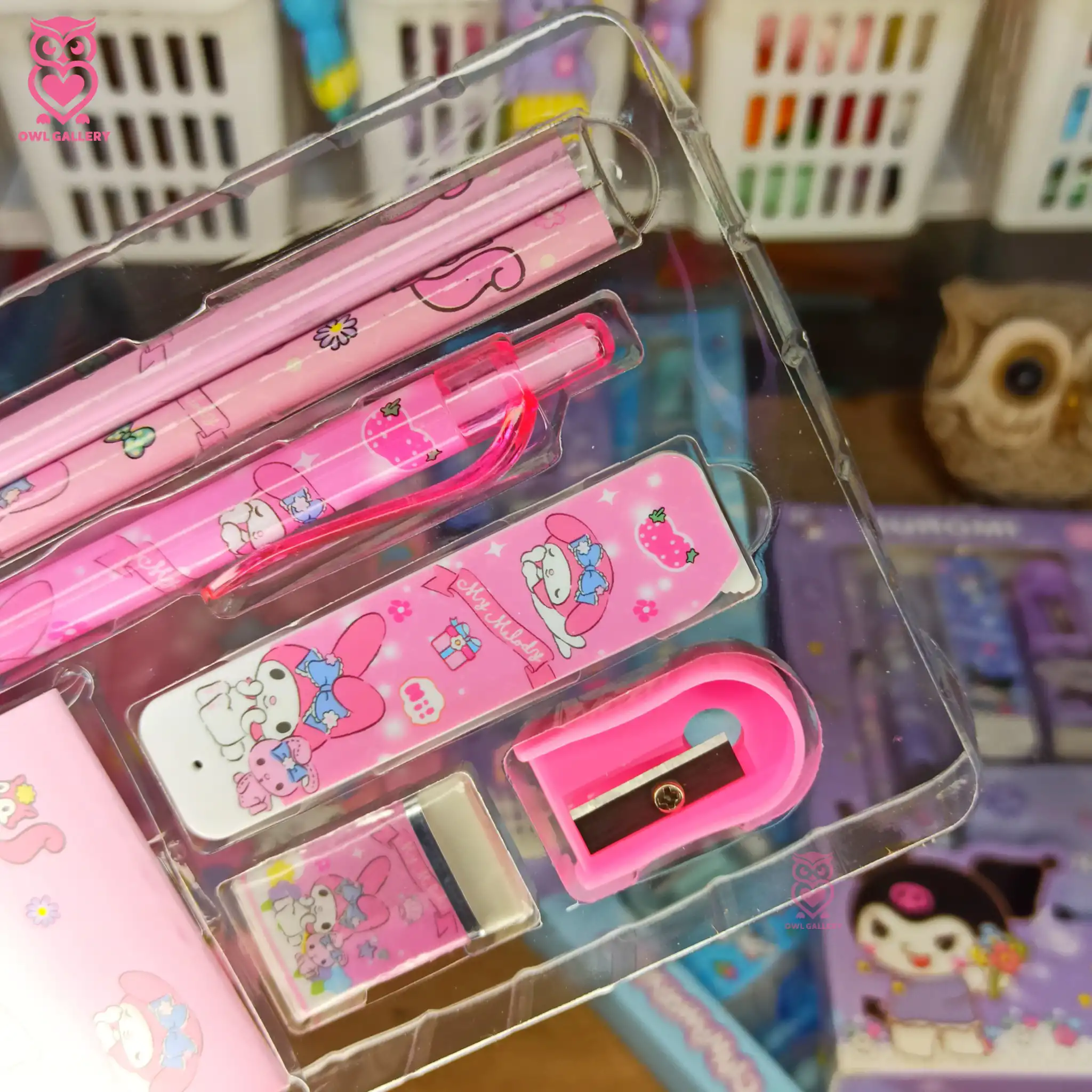 پک شامل: تراش، پاکن، دو عدد مداد، نوک اتود، اتود و دفترچه یادداشت