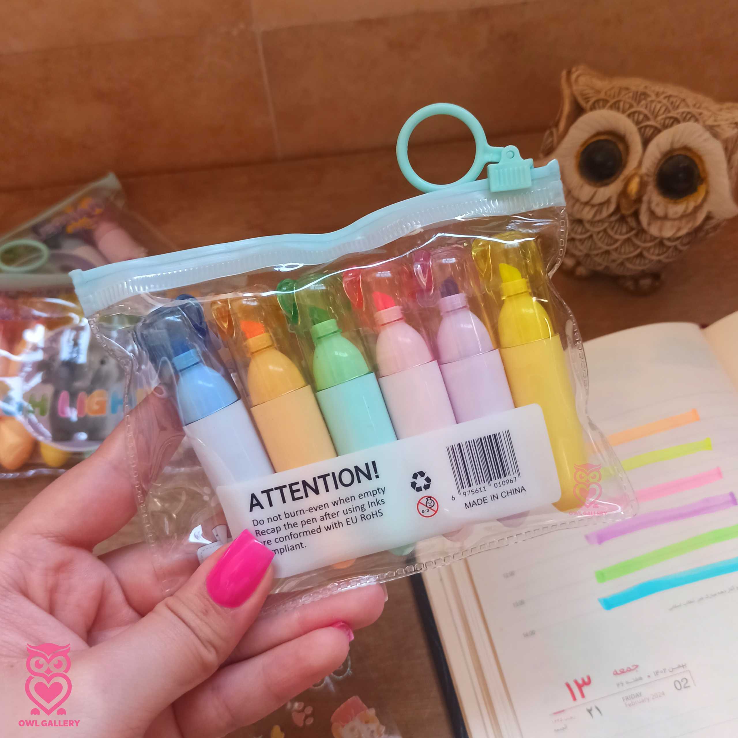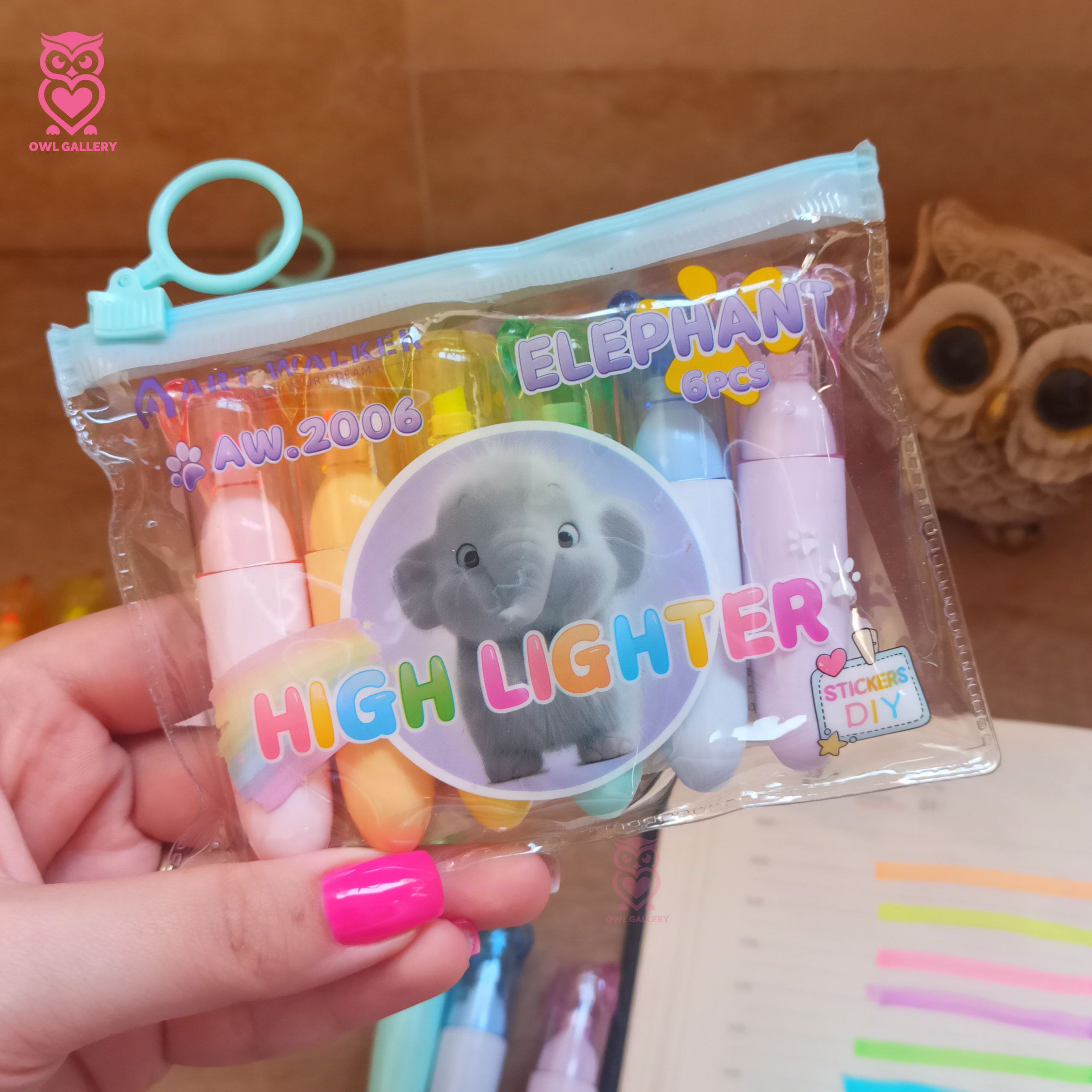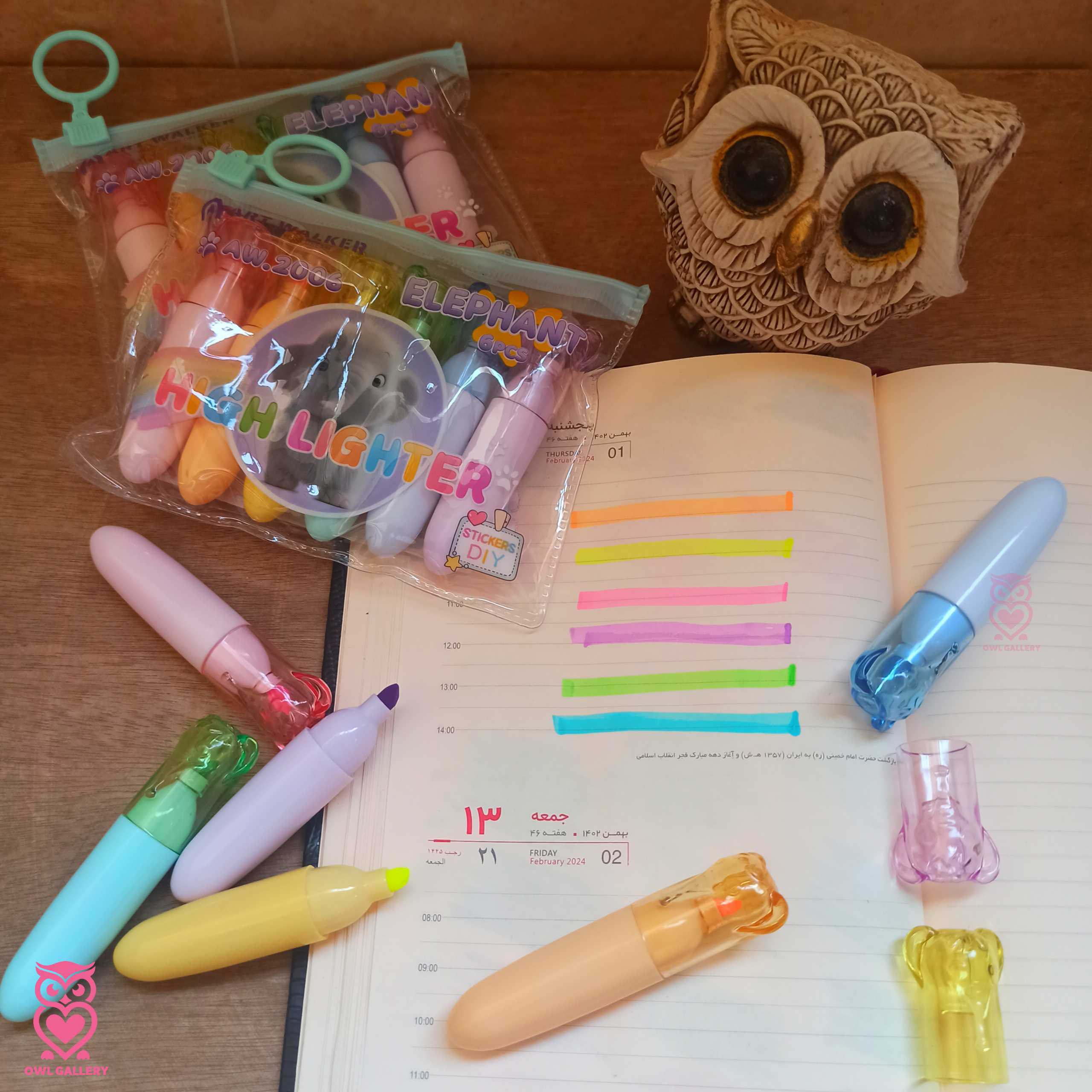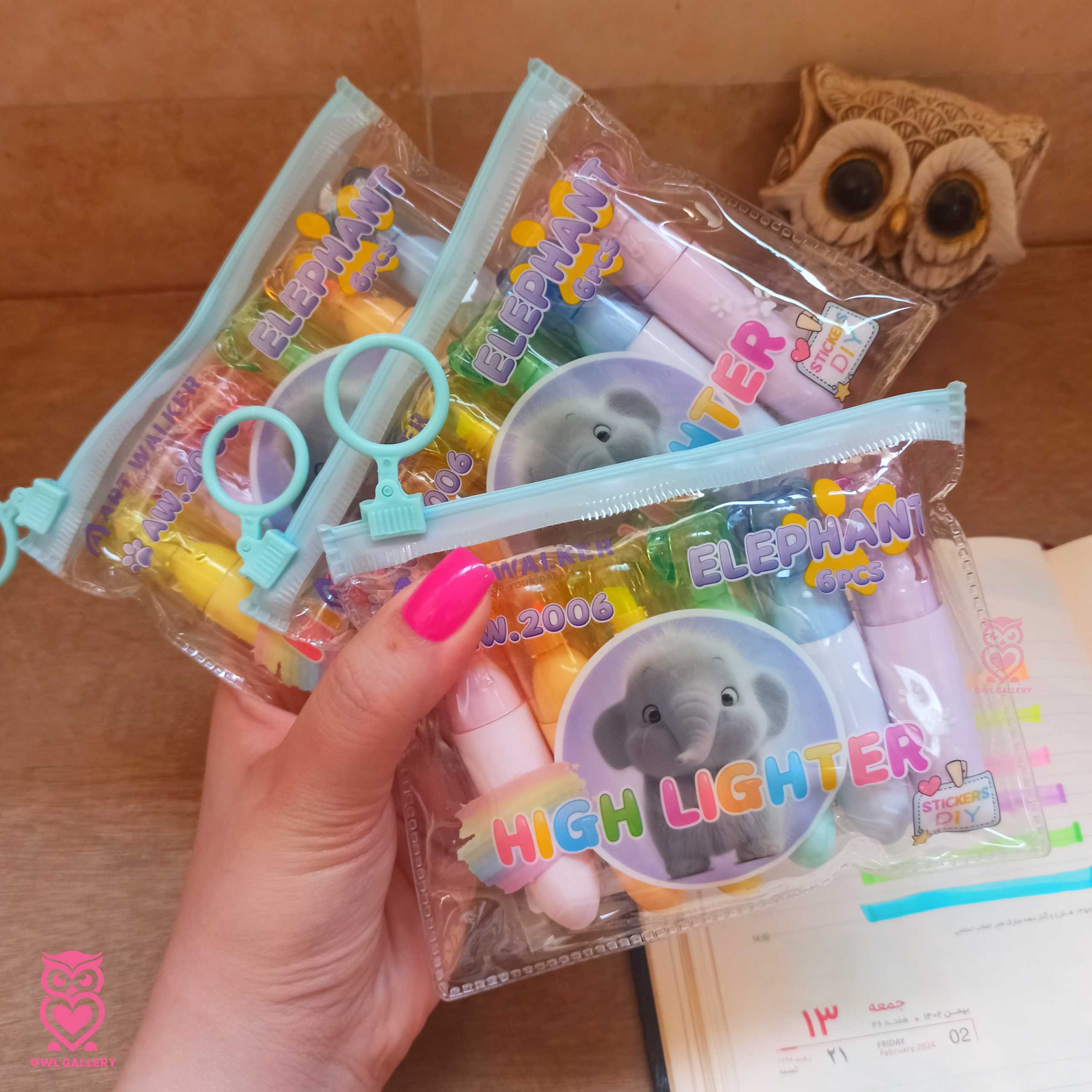 پک ۶ تایی هایلایتر طرح فیل به همراه یک ورق برچسب